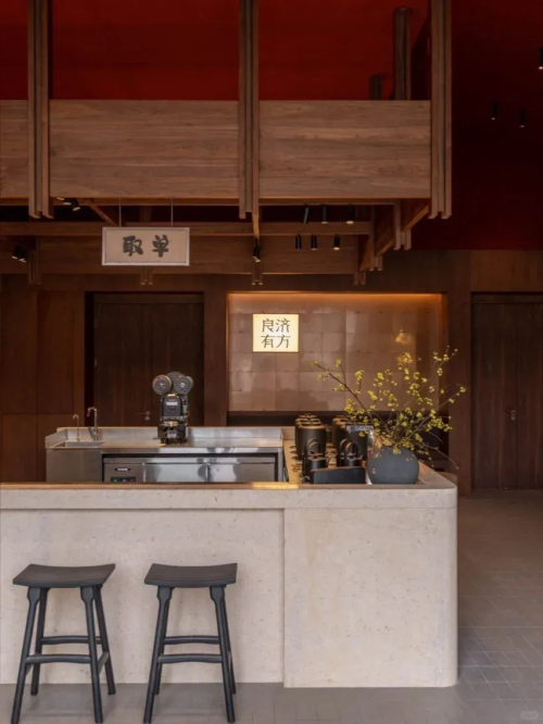 首店选址苏州月光码头,由知名设计事务所 Neutra Architects 操刀,将传统中药柜、苏州园林花窗等元素抽象化融入空间,搭配开放式熬煮操作台,营造 “药材香与烟火气交织” 的沉浸式体验。