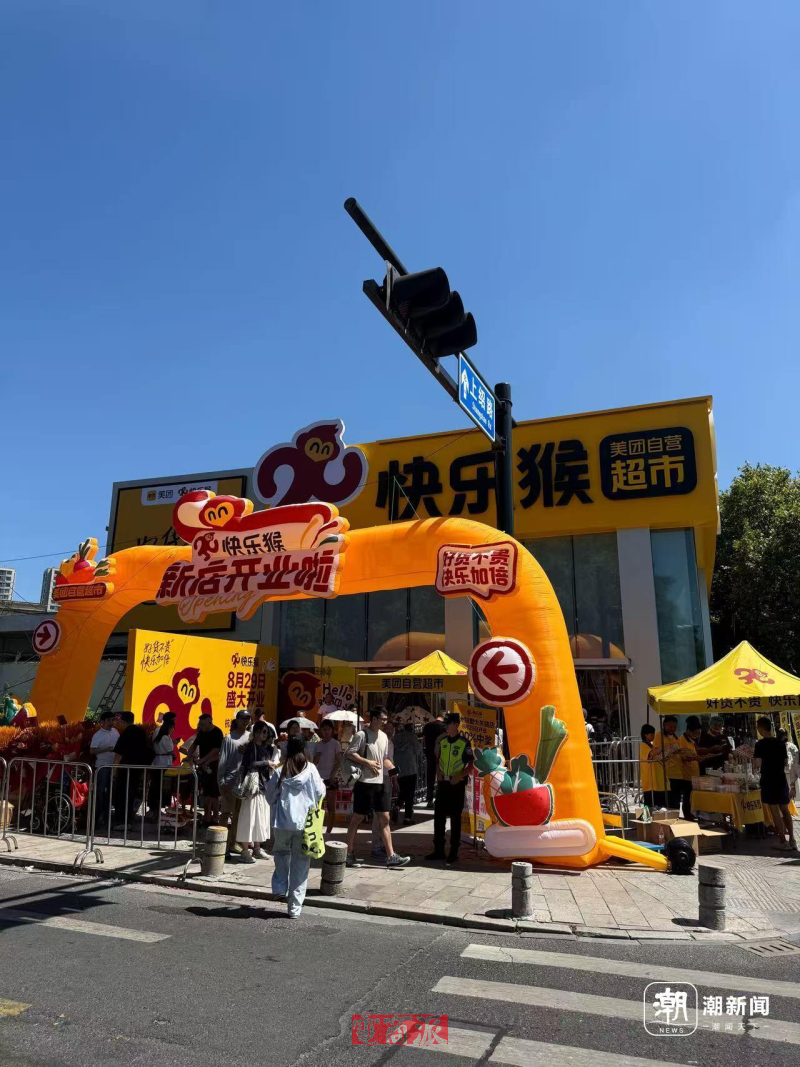 8月29日,美团折扣超市“快乐猴”全国首店在杭州开业,标志着美团进一步布局折扣零售赛道。该店位于杭州市拱墅区大关路,门店面积1000m²左右,周边汇聚多个成熟小区。9月12日,快乐猴超市全国第二店(也是杭州第二店,即美达丽阳店)在杭州拱墅区湖墅南路开业,与首店开业时一样盛况空前。