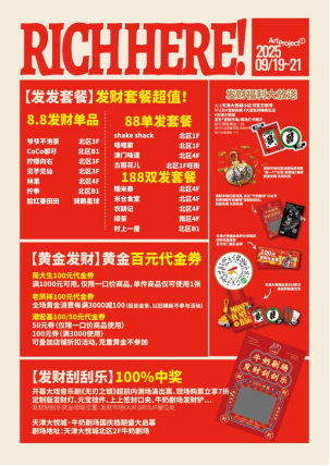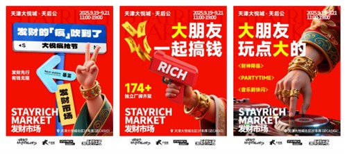 活动期间“财神降临”,任意消费免费领取“舀一勺”元宝(非黄金)福袋,天津大悦城会员积分当钱花、888积分兑换发财能量包等活动。更有财神爷现场DJ打碟,环绕现场的CITYPOP音乐带你感受经济上行的音乐审美;Old money旗袍快闪,开启旗袍穿越巡游之旅;联动“牛奶剧场”为到场消费者送上牛奶剧场「发财刮刮乐」等福利。