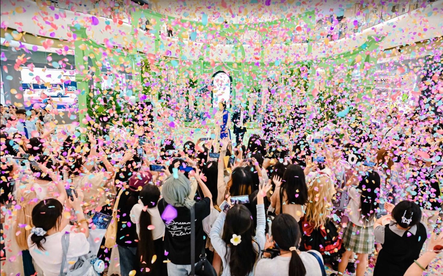 在厦门海上世界,项目以“周同学”IP为核心,打造7米高主题装置及“粉色海洋”场景,迅速在社交平台引发打卡热潮。通过主动对接粉丝后援会与歌友群体,实现精准引流,进一步强化了商场年轻化、潮流化的品牌形象。