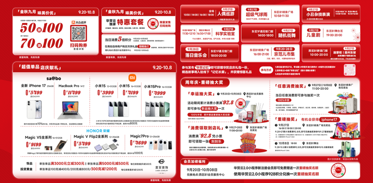金秋九月,惠享全城,坐落于朝阳区来广营地区的北京华贸天地近日迎来13周年庆典。作为该区域重要的商业地标和消费聚集区,本项目自9月20日起至10月8日,推出一系列融合商业促销与文化体验的周年庆活动,展现出区域商业活力与消费新风貌,为周边居民及区域消费者打造一场覆盖多元消费场景的品质盛宴,进一步夯实来广营 “便民商业服务圈” 建设成果。