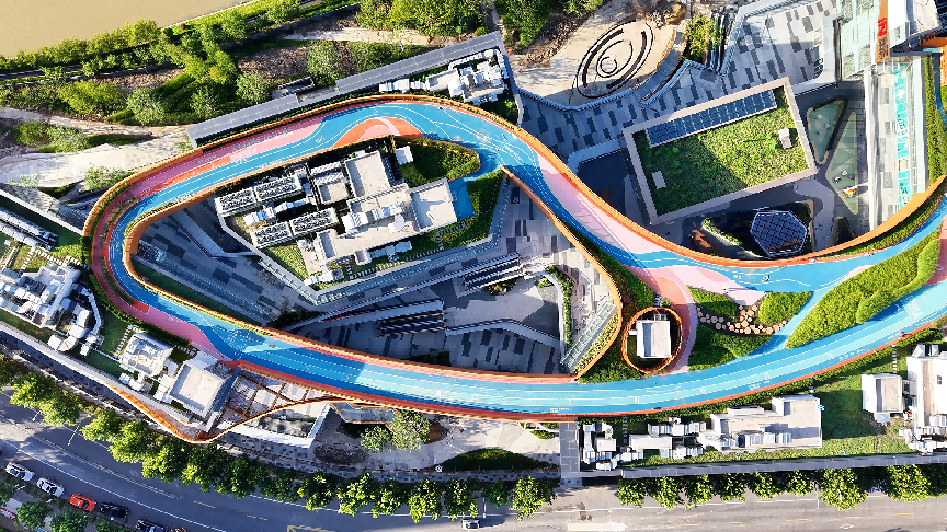 项目以 “生活自然印象” 为指引,将自然意趣与多元空间深度融合,打造了广场音乐喷泉、宠物乐园、滑板公园等专属空间,契合自然与生活的共生之道;跨层廊梯蜿蜒至顶,既串联起流畅的动线,又为居民提供了休憩观景的自在角落;屋顶之上,跑道与球场相映成趣,让运动时光与开阔视野相伴。