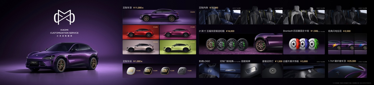 小米定制服务以丰富高品质的定制选项和物超所值的价格,让更多用户体会到媲美百万豪车的专属服务。 定制服务并不是简单地罗列选项,豪华从来不是一道单选题,带来琳琅满目的高品豪华体验、为不甘平庸 的用户提供更多个性化选择,是小米汽车定制业务的核心目标。