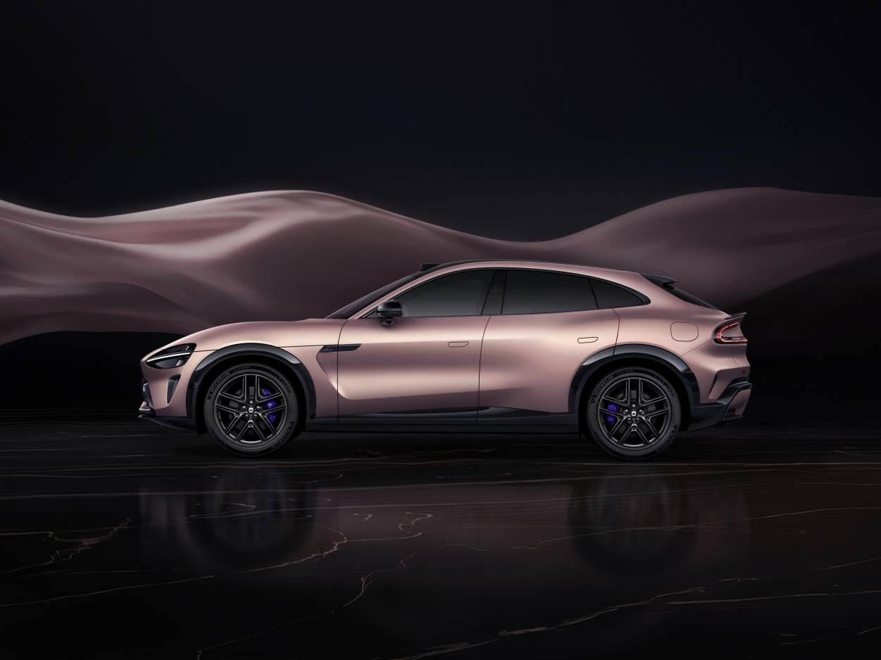 最后还有一款好看的哑光车漆「流金粉 哑光」,这是一种更有力量感的粉,出厂即哑光 ,原理是在最上层清漆加入消光剂,精准地控制光泽度,从而实现恰到好处的哑光效果。由于没有光影干扰,车身的每一道棱线 、每一个曲面转折都变得清晰和锐利 ,像一件雕塑作品。此外,还在色漆中混入小米最昂贵的珠光, 内含不同色相 、粒径的珍珠粉,让车漆的层次感更丰富。