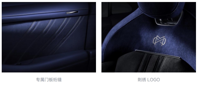 座椅采用「绗缝工艺」,特殊绗缝在超豪华汽车内饰中不仅是工艺的象征,更是阶级符号和品牌叙事工具, 香奈儿品牌的 Chanel 2.55 系列就曾将菱格绗缝引入手袋 ,灵感来自于赛马骑师的绗缝夹克 ,赋予其运动 奢华感。小米汽车定制座椅的飘带创新使用高级时装工艺「七针同步 」绗缝 ,1/8 英寸线间距,整齐划一;「专属门板绗缝」同样精密且极具秩序 ,缝线间距小且平行,精准定位要求高,对手工包覆的对齐精致度 要求极高。「刺绣 LOGO」采用 1862 针柔软绣线,勾勒专属刺绣图案:"M"+"∞" ,寓意为“创造无限可 能”。