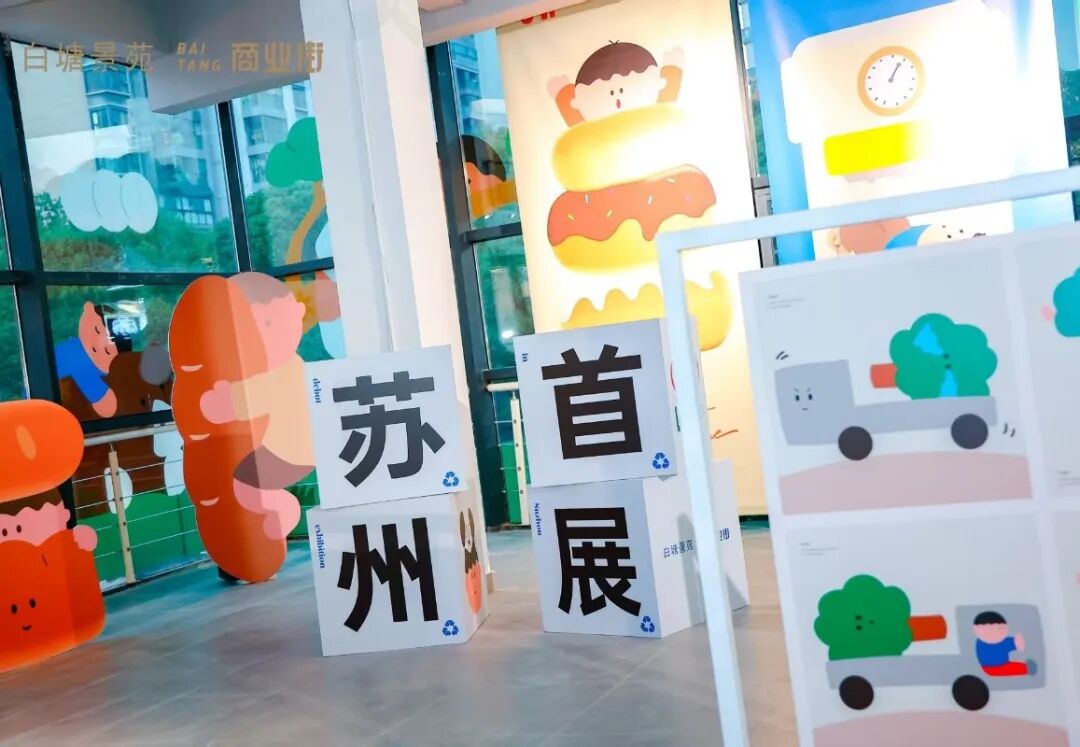 除硬件升级与业态优化外,商业街更注重内容营造与社区联结。开业期间,引入文创艺术IP“大林男孩”苏州商业空间首展,打造氛围十足的社区共享客厅,并同步推出白塘“好市上新”特色市集、马卡龙提线木偶巡游快闪、摇摆狂欢派对、气球达人秀、水岸陆冲派对等丰富活动,结合商户联合促销,吸引大量周边社区居民参与,现场气氛热烈。之后也将与周边邻居一起,共创温馨的邻里大家庭。