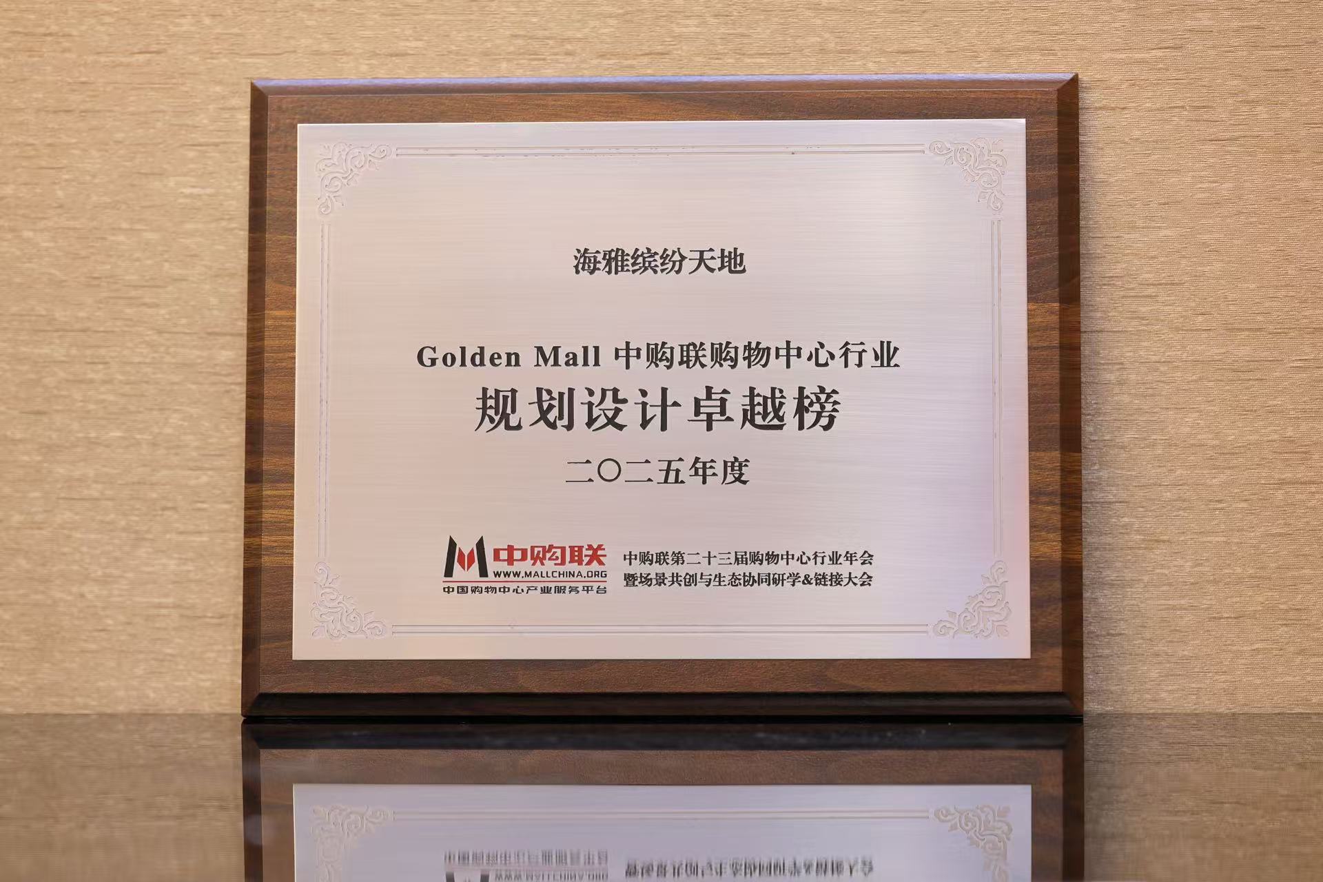 海雅缤纷天地荣登Golden Mall中购联购物中心行业2025年度规划设计卓越榜