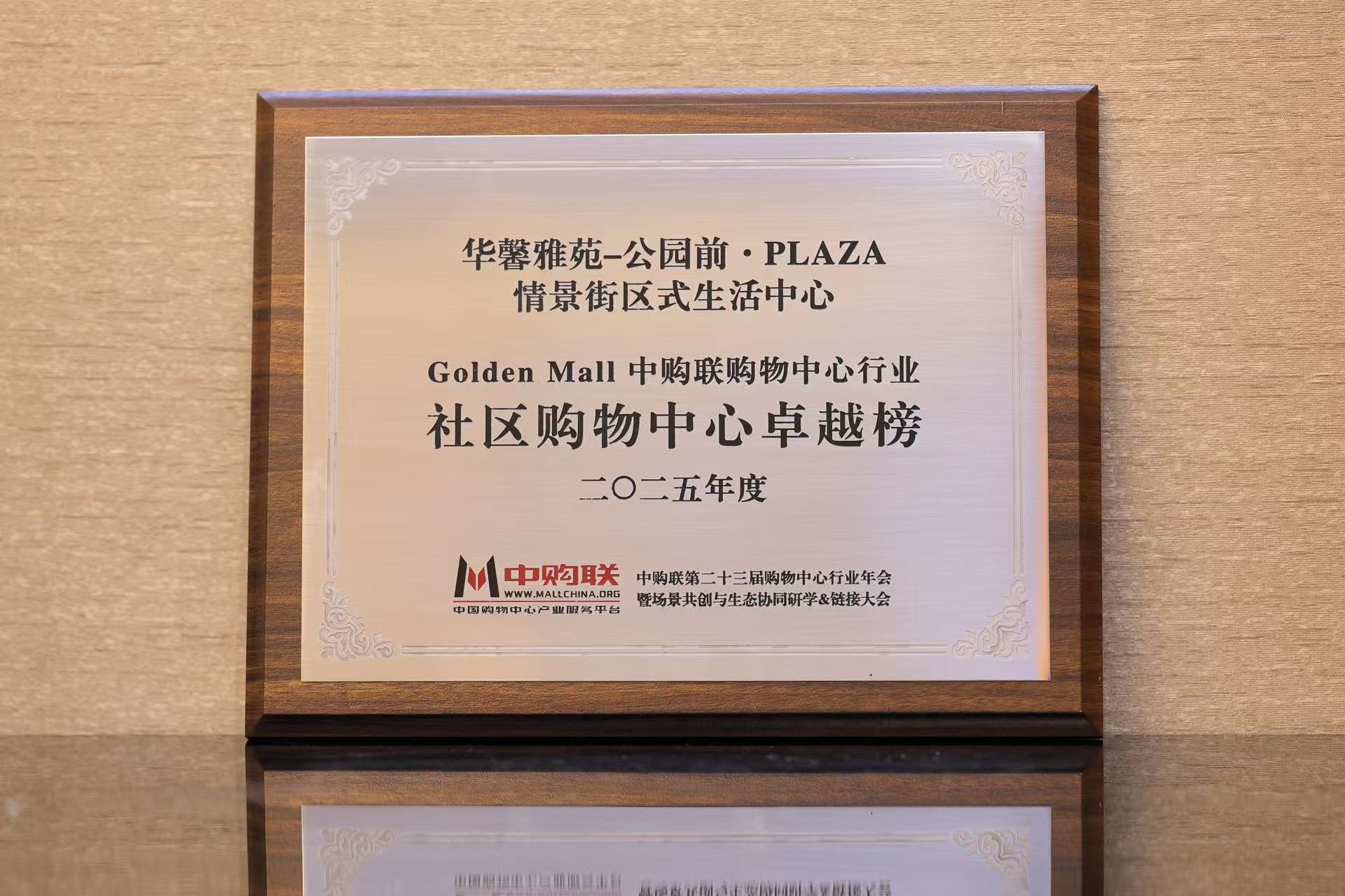 华馨雅苑-公园前·PLAZA荣登Golden Mall中购联购物中心行业2025年度社区购物中心卓越