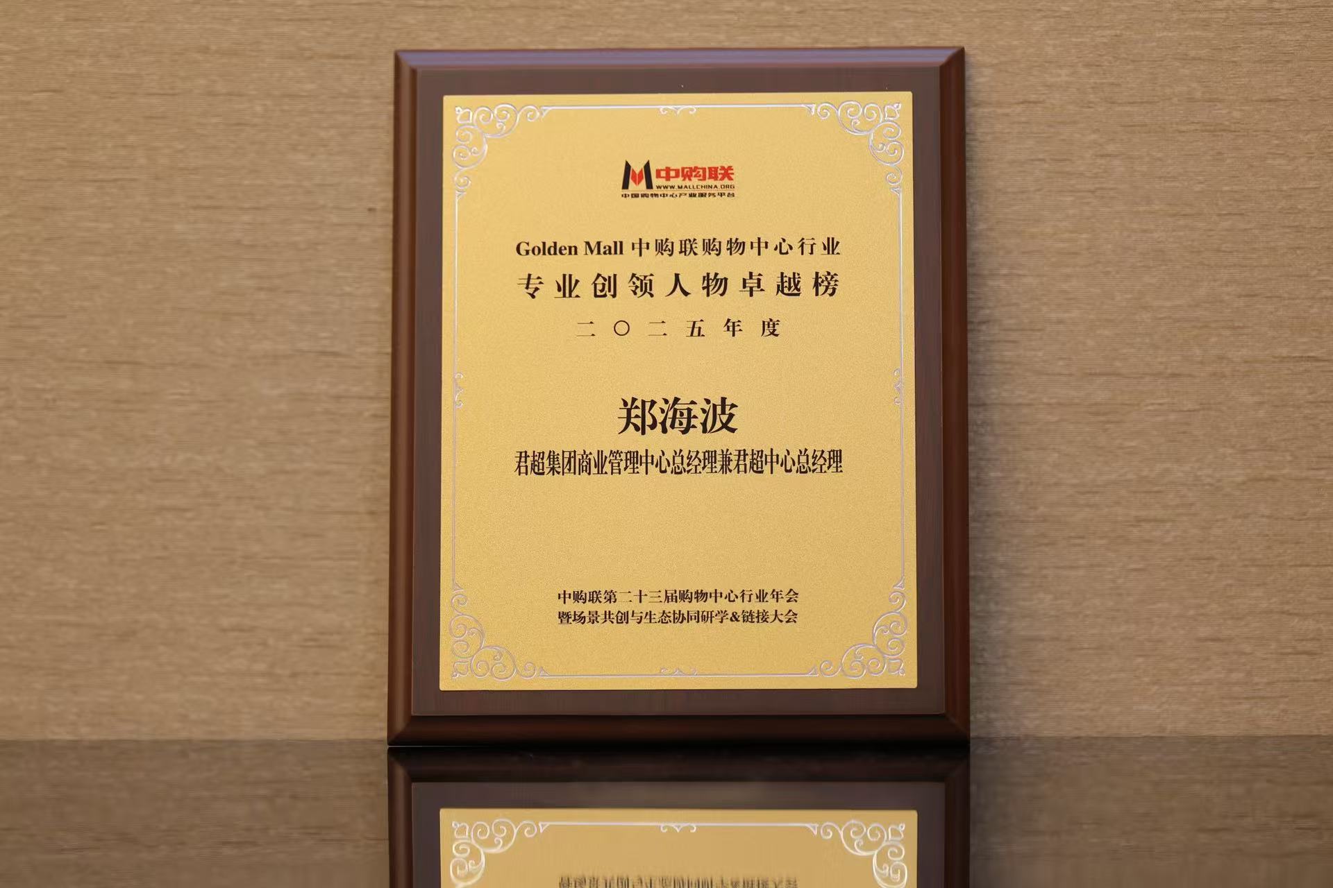 此次大会,发布的“Golden Mall中购联购物中心行业2025年度专业竞争力榜单”中,君超集团商业管理中心总经理兼君超中心总经理 郑海波先生荣登Golden Mall中购联购物中心行业2025年度专业创领人物卓越榜。未来,中购联及全体商业同仁携手共进,共同应对中国商业地产行业所面临的危机与机遇,以不变的初心砥砺前行,推动行业持续变革,行稳致远!
