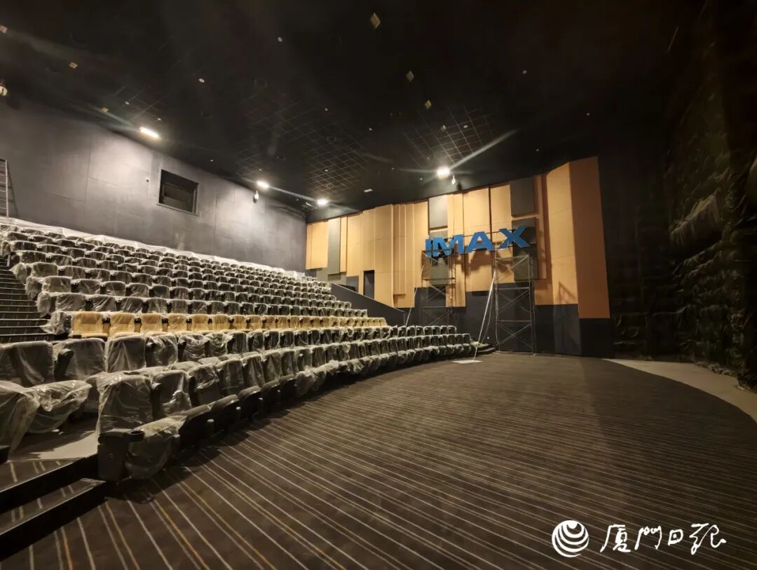 作为厦门首店,同时配置海沧首个IMAX大屏,影城内部装修已进入收尾阶段。走进IMAX厅,巨大的银幕占据整面墙壁,让人忍不住想象开业后在这里看大片的震撼场景。