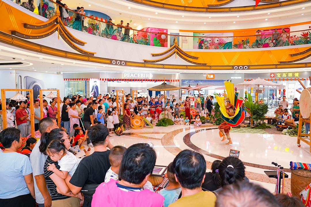 西双版纳融创茂则充分发挥地域优势,通过“助农市集”与“非遗演绎”双线并行(“双市齐开·三韵共鸣”),既展现了傣族象脚鼓、紧那罗舞等非遗的艺术魅力,又赋予了商业空间以社会价值。每日的巡游与篝火狂欢成为强有力的客流引擎,同时通过抖音等新媒体矩阵进行内容裂变,实现了线上引流与线下体验的高效转化。