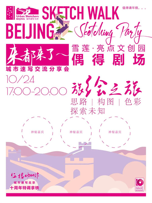 这不仅是十周年庆典,更是一场全城艺术漫游。从晨光中的胡同烟火到夕阳下的古建飞檐,从市井生活到现代地标,我们的笔尖将串联起北京的万千气象。届时将有速写马拉松、主题工作坊、艺术家分享会和作品画廊,让每个人都能在街角巷尾、博物馆、咖啡馆,用画笔自由记录、热烈交流。