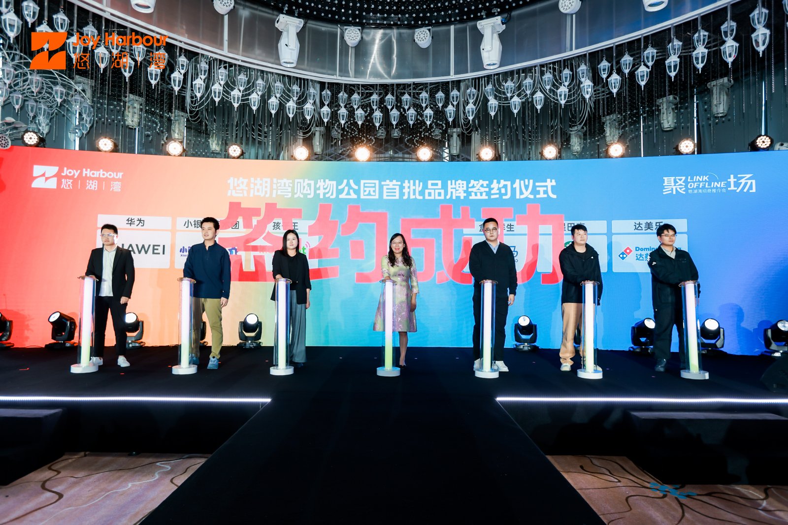 推介会最引人注目的环节当属首批商户签约仪式。盒马、孩子王、星巴克、小银星艺术团、华为、星聚会、探秀、达美乐、竞速时刻、U³ space十家知名品牌代表依次上台,与悠湖湾集中签约,全场共同见证了这激动人心的一幕!这些优质品牌的入驻,不仅验证了市场对悠湖湾项目的高度认可,更为项目明年的精彩亮相奠定了坚实基础。