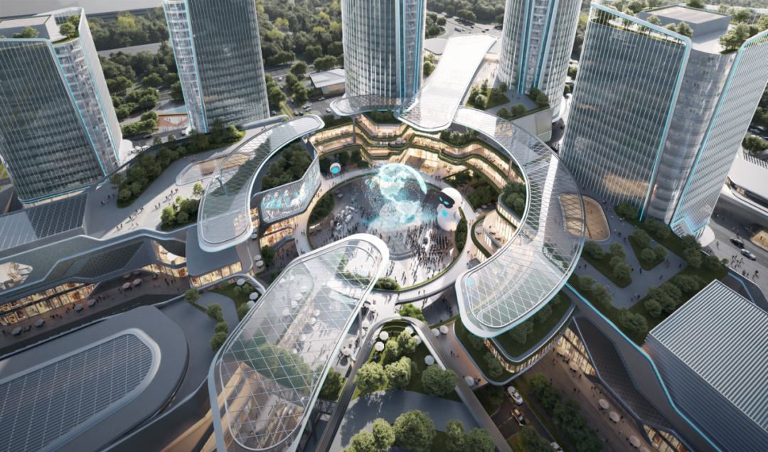 项目将采取分期建设,先期建设4栋高层写字楼及其裙楼商业、多功能演艺中心、深潜中心。旭辉商业基于此创新引入POD理念,借鉴日本大阪梅北公园等国际先进案例,通过多层次景观设计修饰,以公园休闲动线实现地铁口与商业的地面连接。公园中规划台地绿化与大尺度跃层步道,实现地面与2F“圆环”动线的衔接。POD设计既解决了通达性问题,又为未来举办主题市集、艺术展览、音乐节等城市级事件提供了场所,实现“未建先活”的场景预埋,着力自然生态与人文活力的共生共荣。