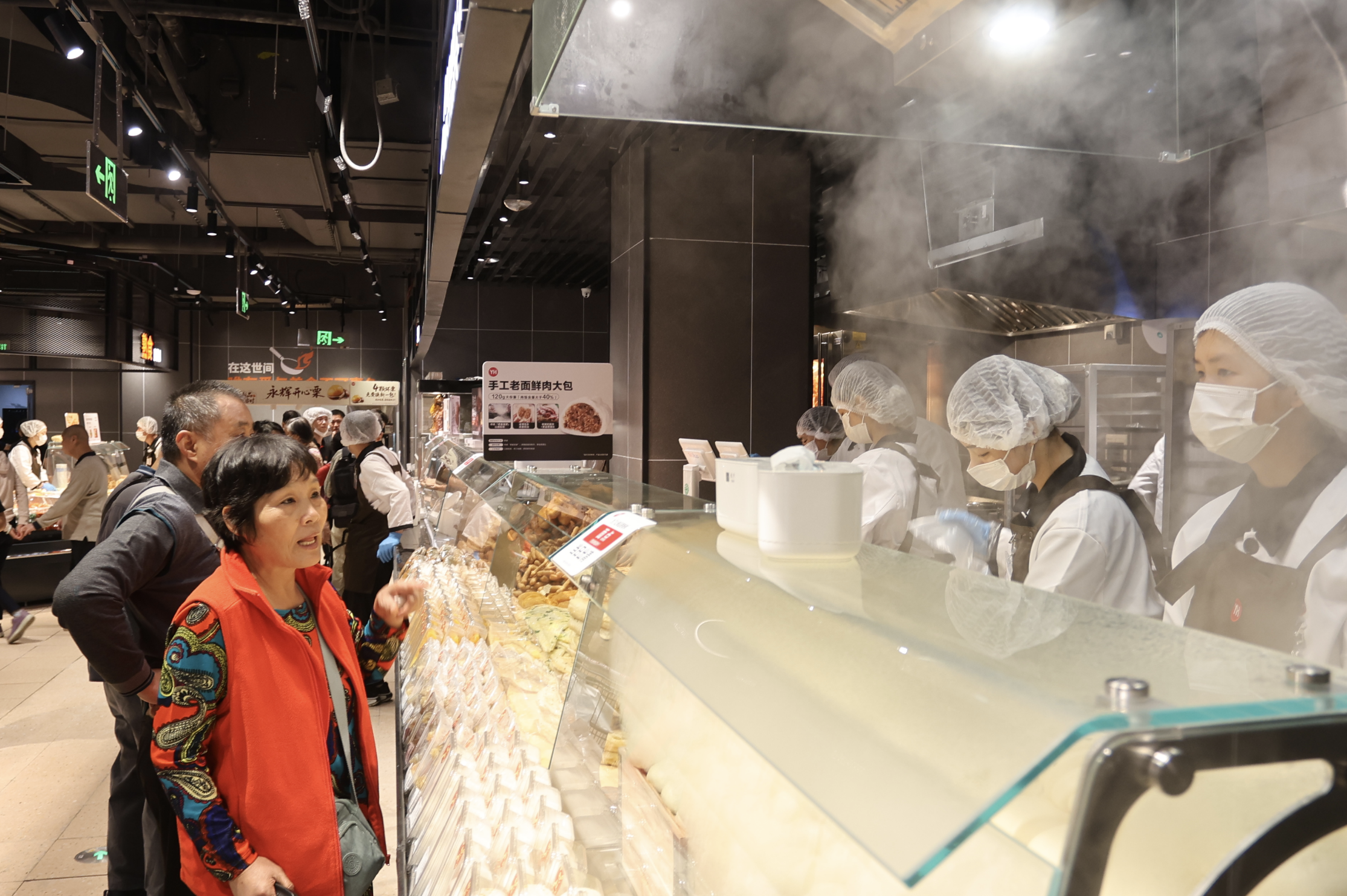 服务细节方面同样全面升级。两家店的肉禽柜台均可提供切丝、切片、绞肉、剥皮等个性化加工;广州荔湾领展广场店的高端海鲜区更提供清洗、打氧服务,并可现场进行清蒸、蒜蓉等简单烹饪。调味品货架旁设放大镜,连卷袋区配湿手器,散装食品标注每斤约含数量,果切组合按甜度标明食用顺序,从细微处提升购物体验。
