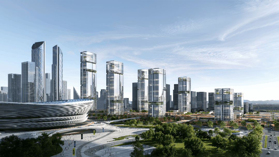 此次发布的项目效果图,从“流水中的光影”提取灵感,融合现代语言与在地文化元素,展现出动静相宜的视觉张力和兼具国际视野与江南韵味的城市地标形象。