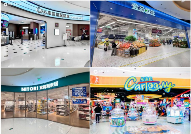 在品类与业态的规划上,商场秉持“大而全”的理念,致力于提供一站式的区域消费体验。同时,聚焦年轻化趋势和引入多家首店品牌,力求打造一个高品质的社交目的地,营造出「24h在线」的活力氛围:主力品牌中,首次进驻罗店的盒马鲜生,以近4000平方米体量提供更丰富的SKU与更全面的业态;上海首家拥有CINITY LED的中影国际影城,以高规格配置为观众呈现极致的视听享受;儿童游乐头部品牌卡通尼打造超2000平方米的亲子主力店,成为家庭共享的欢乐空间;日本快时尚代表品牌优衣库将简约时尚的设计风格和高品质的服装产品带入罗店,为消费者带来别具一格的穿搭灵感;日本知名家居品牌NITORI注入国际视野的家居潮流风尚。