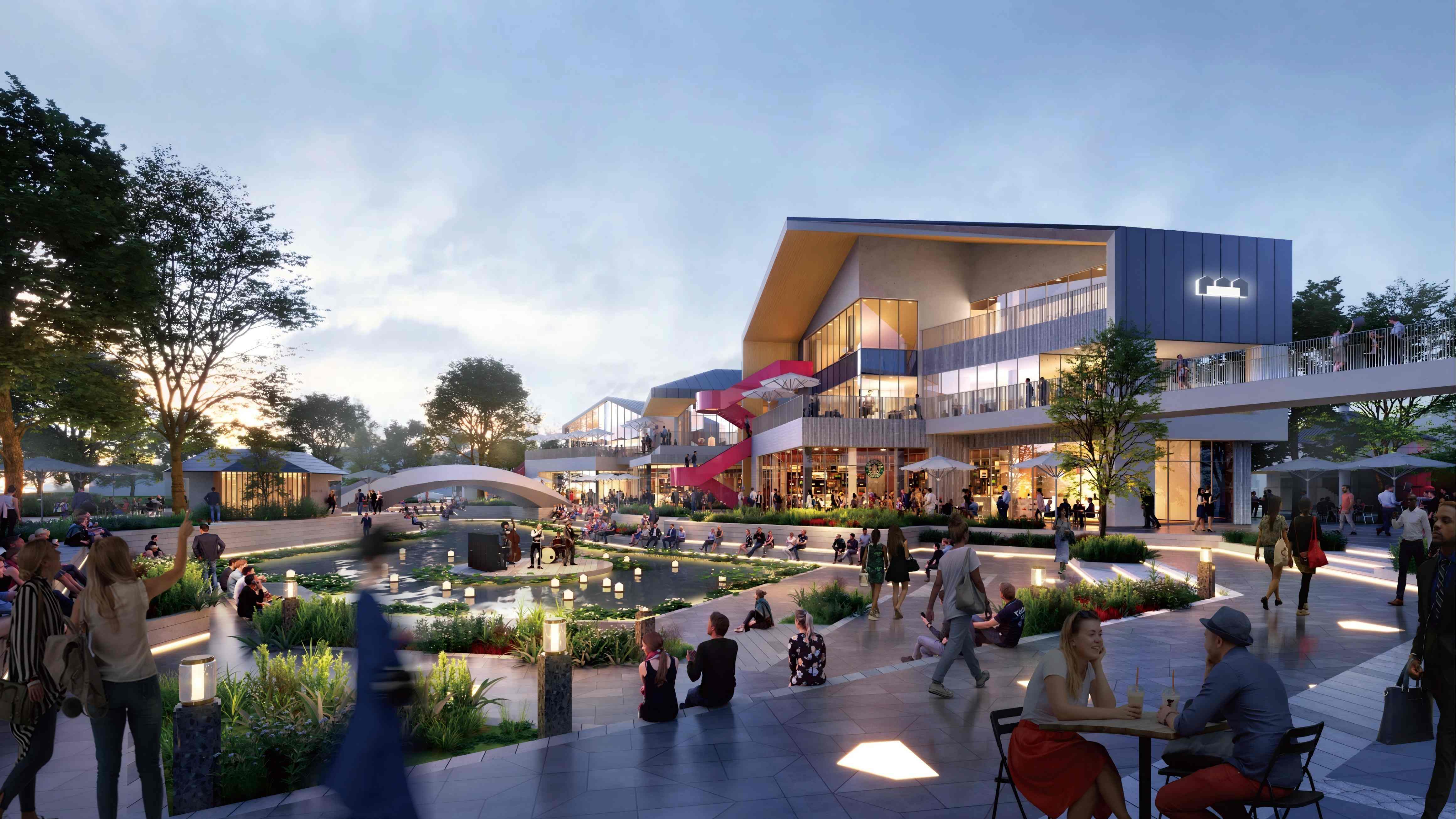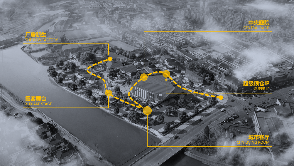 此外,旭辉商业结合当下年轻人对户外、亲水的喜爱,提出了粮仓与周围水系相融合的整体公共空间提升方案,既扩展了项目的空间丰富度、商业可能性,又为城市打造了一方灵动的休闲文化场域。