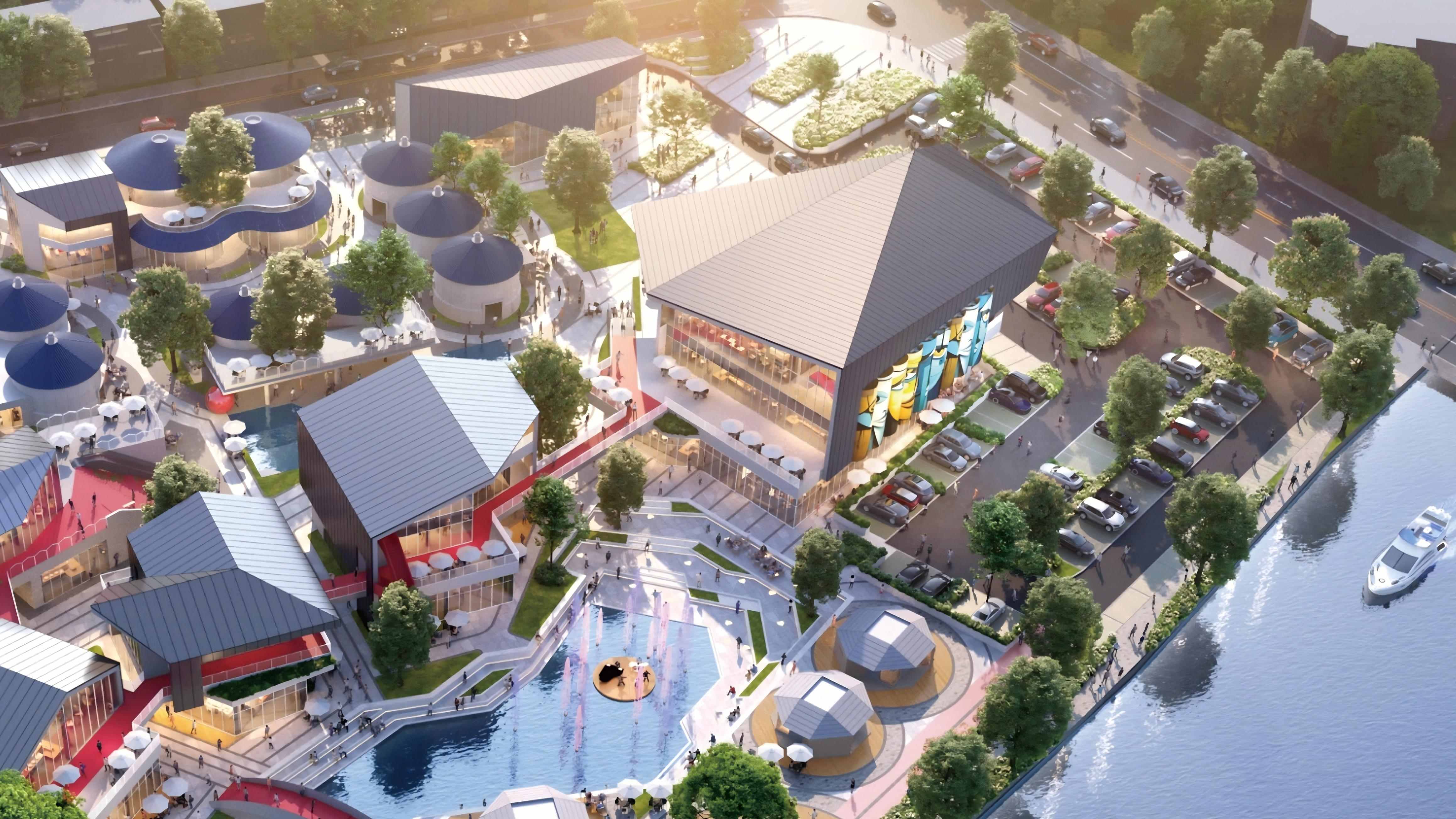 除了室内空间的焕活,项目亦充分结合水系资源,利用水塘景观打造乐园化的体验空间,并设置水上舞台,未来通过主题节庆、艺术展览、户外嘉年华等活动,将历史空间转化为兼具文化展示、公共活动与休闲体验的复合场所。