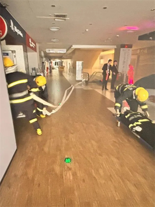 运营服务部有序疏散:工作人员手持疏散引导棒,分区域引导商户员工,沿着安全通道弯腰捂鼻快速撤离,全程无拥挤、无遗漏,5 分钟内完成全员疏散至广场外安全区域。