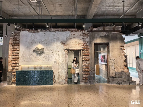 踏入这座3000平方米的百年老建筑里,复古绿与砖红色热烈碰撞,斑驳的墙面诉说着岁月故事,现代设计美学与废墟感肌理在此完美交融。