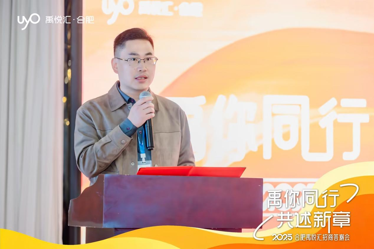 合肥禹悦汇项目总在致辞中介绍了项目的发展规划和“共述新章”的理念,强调了项目正积极向社交化品质生活中心转型升级。他指出,2025年,合肥禹悦汇持续优化商业结构,引入多个优质品牌,进一步提升了区域的商业配套能力。