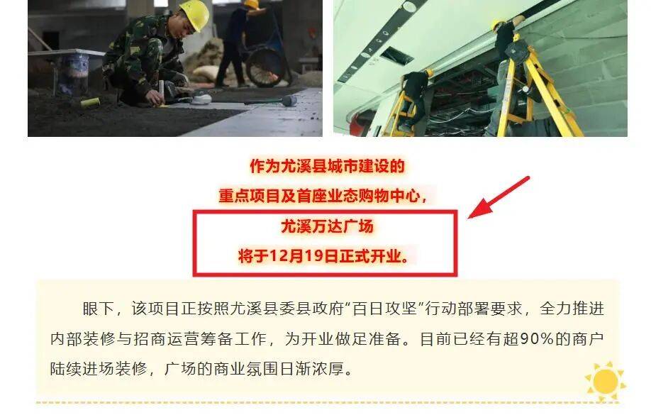 据媒体介绍, 尤溪万达广场已经有超过90%的商户陆续进场装修。目前招商及商户铺面装修工作已进入最后冲刺阶段,国内外知名连锁品牌、本土特色商户已入驻,为尤溪县城市商业升级增添多元活力。