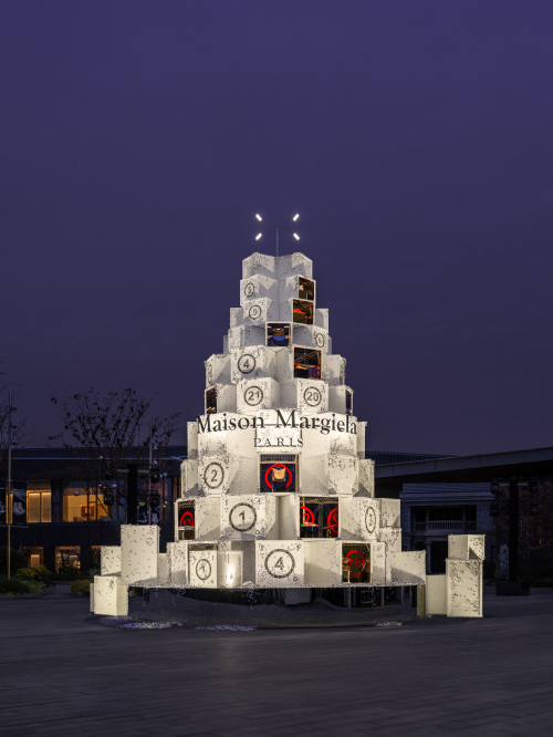 马吉拉特别打造的节日主题装置“雪景幻象”位于苏州仁恒仓街的仓街广场。装置以品牌标志性数字编号的为设计灵感,将数字灯箱和金属亮片错落堆叠,犹如穿越至梦幻的冬日奇景,打造出光与影的奇妙交织,点亮璀璨夜空。品牌的编号系统以数字0至23标识品牌的不同产品线,被圈出的数字对应所属系列,在保持品牌“匿名性”美学的同时彰显单品个性。