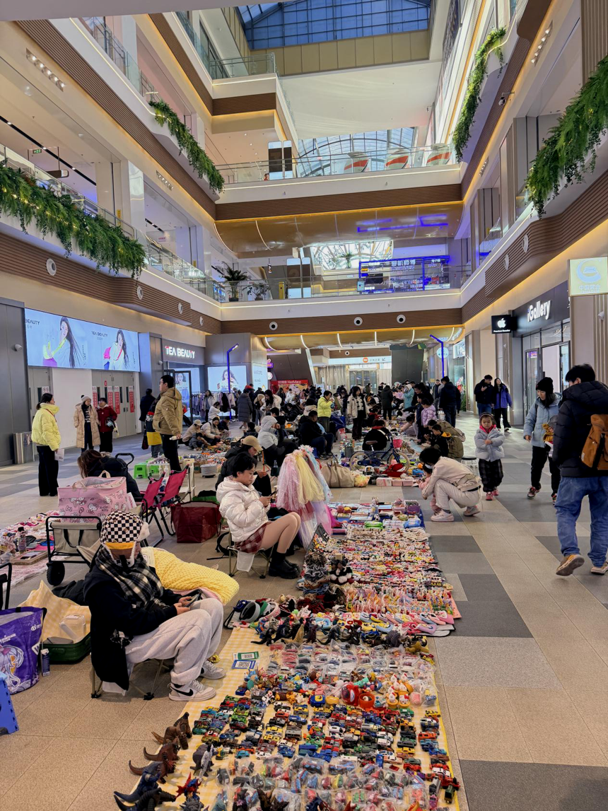 五一假期,龙玥城阳光顶棚下熙熙攘攘,人气十足。卡皮巴拉小黄豚电梯瀑布快闪与套圈游戏吸引大量游客参与,成为现场焦点。无数潮流IP小黄豚更是“占领”了整个扶梯区域,引得众多顾客驻足拍照,记录假日里的欢乐时刻。