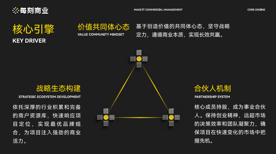高效的决策机制与团队凝聚力:推行“项目股份激励”,让核心团队成员成为事业合伙人。这不仅激发了团队的创业精神,更带来了远超市场水平的决策效率和极强的团队凝聚力,确保项目在快速变化的市场中把握先机。