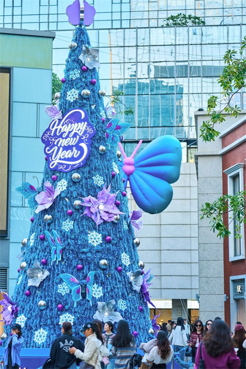 从2021年,富华里与场内珠宝品牌HEFANG Jewelry联名打造的10米巨型圣诞树,到2024年“绒冬蝶语圣诞主题季”的动态蝴蝶树搭配“漫天飘雪”,每一年的圣诞树在节庆后依旧鲜活的存在在一张又一张的“人生照片”中,持续激活社交传播的长尾效应。