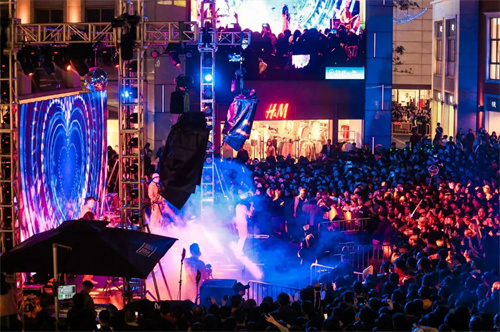 中央广场增加了模块化灯光编程系统,实现“情人节粉雾/圣诞极光/万圣紫焰”场景秒切;
