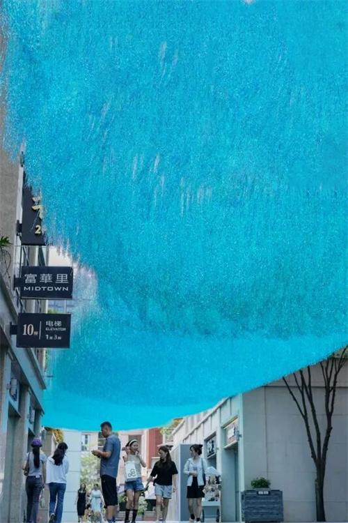 去年新增的遮阳天幕,在遮阳蔽日,创造视觉清凉感的同时,也成为了引爆社交媒体的“天空海”;