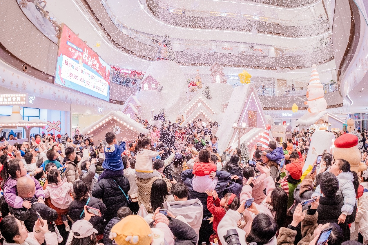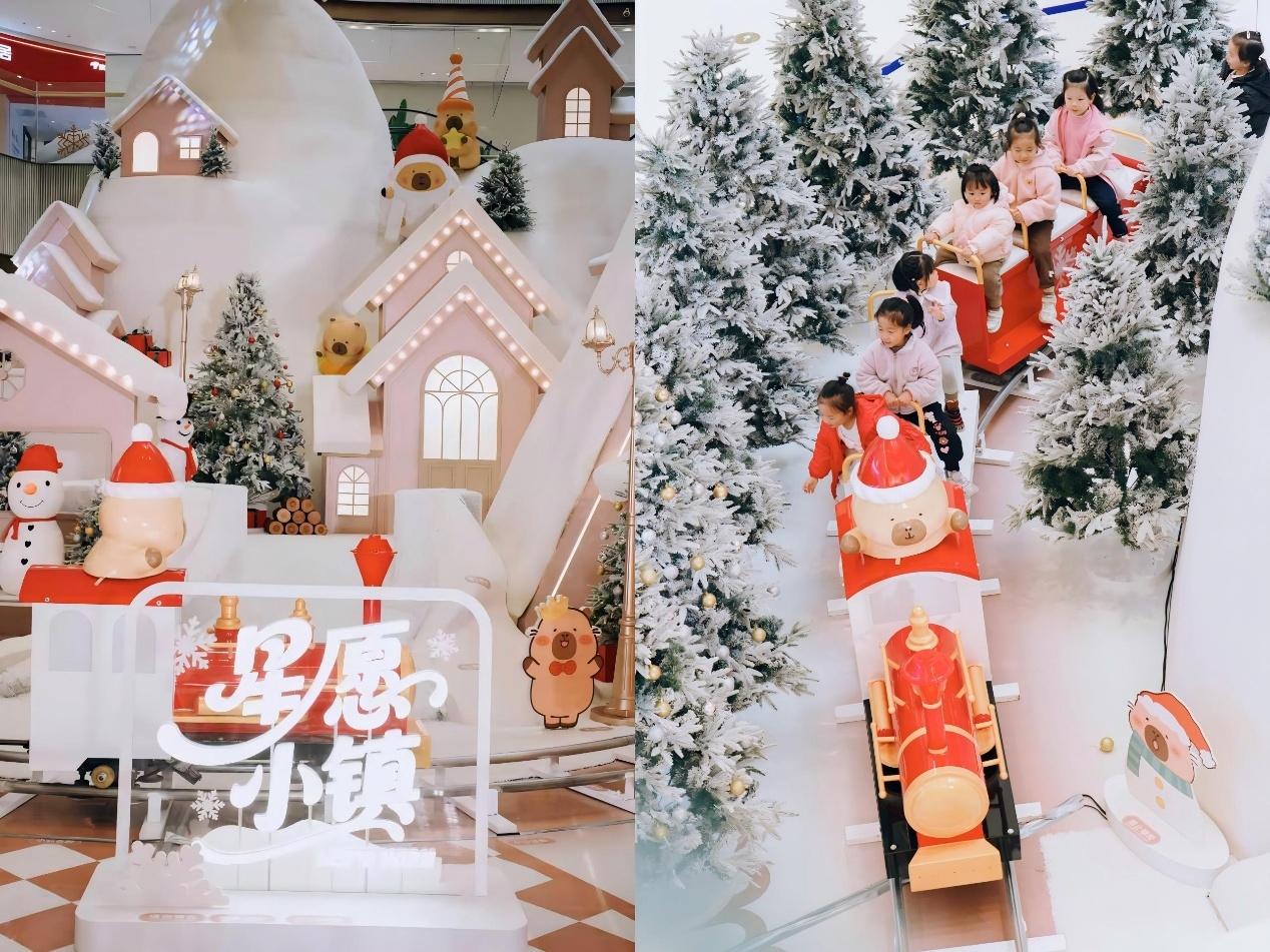周年庆活动期间,结合商场内1月前亮相的梦幻美陈装置--“冰雪星愿小镇”,500㎡的沉浸式冰雪圣诞场景将冬日童话完美呈现,成为年末节日氛围的代名词。小镇飘雪、圣诞唱诗班、圣诞老人巡游、魔法秀等连续一个多月系列温暖的小镇活动,带给到场家庭一场充满魔法与欢乐的亲子盛宴。