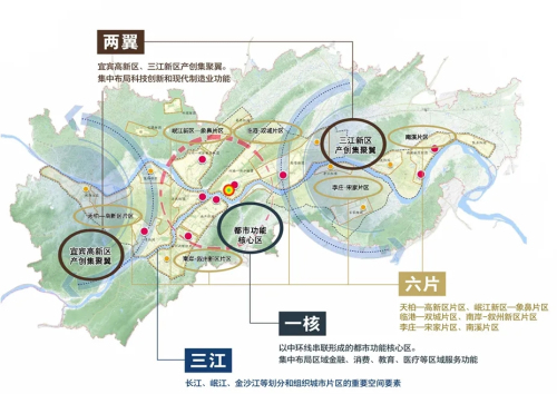 立足川南渝西、融入川渝滇黔,宜宾已形成「一核两翼多中心,三江六片多组团」的战略功能协同布局,产业结构不断优化、经济产值持续上升、城市未来发展空间巨大。