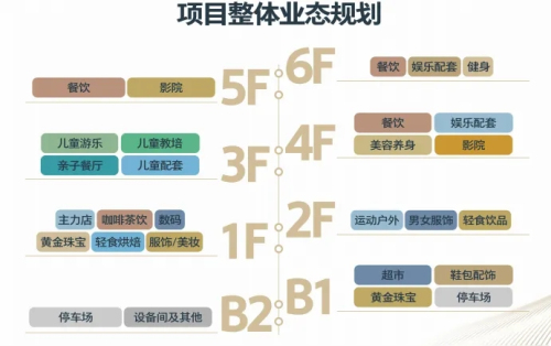 其中,B1定位「聚惠工坊」,以品质超市、鞋包配饰、黄金珠宝等为原点,悦享品质惠购新领地;1F定位「乐享潮逛」,聚焦主力店、黄金珠宝、茶饮轻食、服饰美妆等,打造潮流风尚的极致主场;2F定位「潮尚聚场」,以运动户外、品质服饰、轻食饮品为核心,呈现品质生活美学空间;3F定位「童趣乐园」,将吸引娱乐、教培、餐饮及相关配套,定制亲子乐活天地。