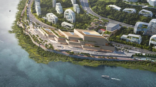作为三江新区滨江商业带的标志性项目,知名建筑设计团队扎哈·哈迪德建筑事务所(Zaha Hadid Architects)在项目建筑创意及地标元素打造时,结合项目北侧的「中元造纸厂」、隔江相望的「陈塘关古镇旧址」、深入人心的「哪吒文化IP」等,以江景平台与特色IP地标为核心,构建起连接历史记忆与现代消费的长江文化枢纽。