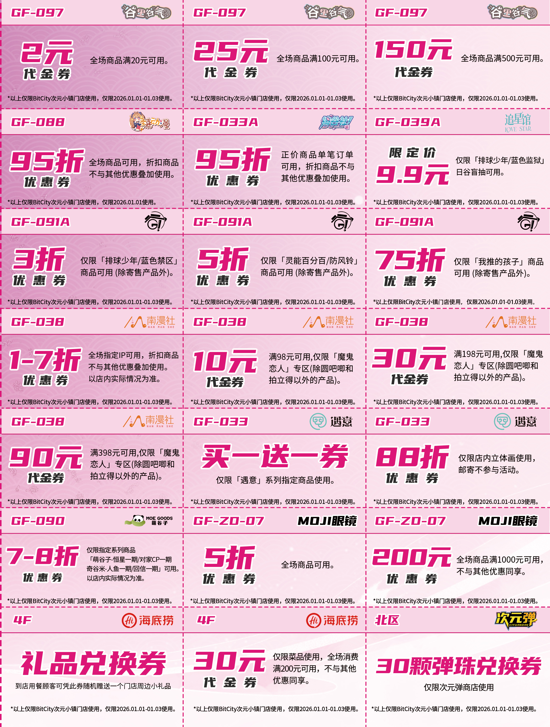 门票核销&抽奖地点:BitCity次元小镇·G层客服台