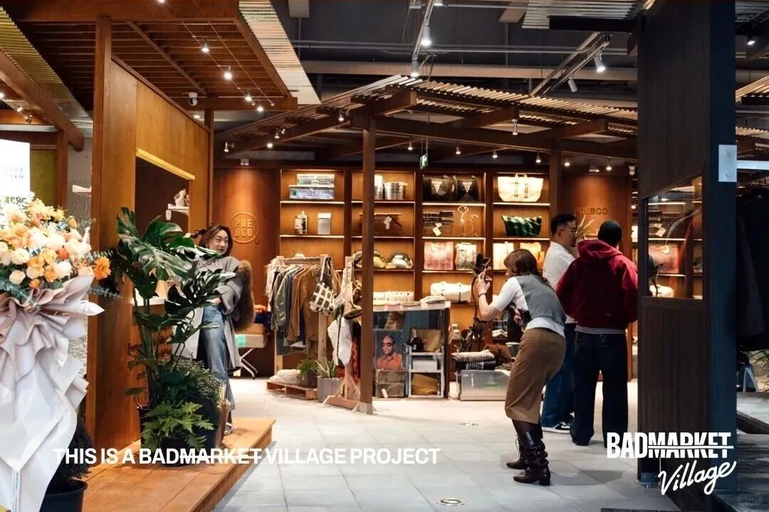 Bad Village 全新空间汇聚了极具活力的品牌矩阵,构建完整的“村落生态”。店内涵盖了BADMARKET、TANOXI、ON A DAILY BASIS等潮流服饰,还有PUEBCO、3GEGU等生活方式选品,以及THE MAD HATCHER等户外品牌。