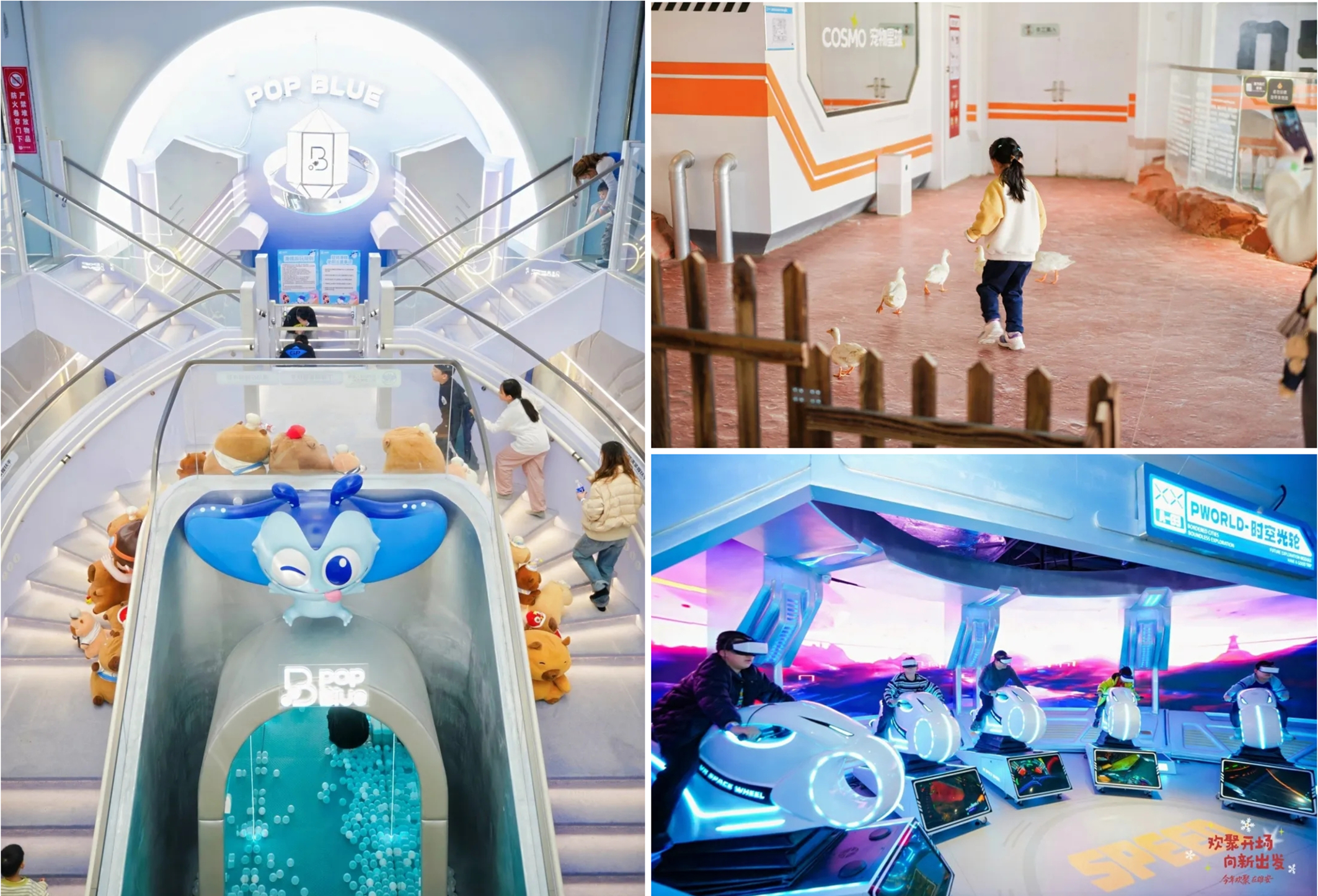 四大主力店各具亮点:澎湃视界城市欢乐场以 VR/AR/MR 先锋技术打造沉浸式潮玩空间,是京津冀年轻群体娱乐首选;5000㎡POPBLUE 家庭成长中心主打海洋、太空双主题,承包亲子家庭的欢乐时光;AMIGO 亚秘谷宠物星球以六大沉浸主题、300余种海陆空萌宠,成为爱宠人士的打卡胜地;春江水则以高端港式茶餐,满足不同客群品质用餐需求。