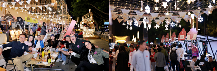 “美食+”潮流:打卡年轻社交新地标 紧扣Z世代潮流社交消费需求,打造兼具氛围感与互动性的潮流消费聚集地:广州VT101维多利广场“花火生活集”,联动八大年轻潮牌与本土文创资源,设置特色美食摊位、文创手作区与跨年夜专属舞台,Live演出与美食香气交织,解锁跨年夜专属欢乐氛围;武汉越秀IFC国金天地“心愿飘雪季”打造沉浸式人工飘雪场景,以新年音乐节、街舞大赛、潮流市集等活动,吸引76万年轻群体到场,成为年轻群体社交聚集地;广州悦汇城联动黄油小熊、华为等热门IP及品牌开展快闪,设置IP打卡装置、互动游戏区与联名美食,将美食消费与粉丝经济、潮流文化深度绑定,进一步强化城市潮流文化地标定位,这一举措精准契合广州“打造‘羊城消费新八景’城市消费品牌”的政策导向,为城市消费注入年轻活力。