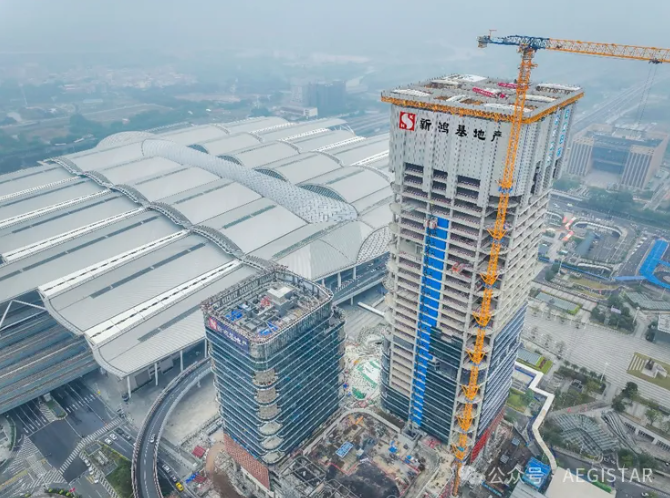 新鸿基地产广州南站大型综合体广州环球贸易广场(广州南站ICC)主体结构全面封顶,标志项目进入新阶段。