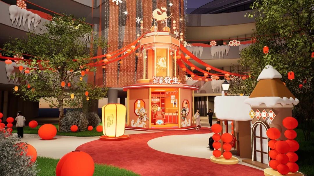 其中,“灯火映春”主要体现在地标美陈方面,各地爱琴海项目打造以“灯”、“马”为核心元素的城市级视觉焦点。如上海爱琴海・缤纷里将以“Horse發生 好运江南年”为灵感,推出12米高巨型宫灯美学场景,通过融合光影祈福、国风演绎、非遗表演、风物雅集等演绎形式,成为独属上海金山的美学打卡地;慈溪环创爱琴海则以“当红之年”为主题,8米高巨型华灯搭配中国结等传统元素,构筑沉浸式中式美学空间。
