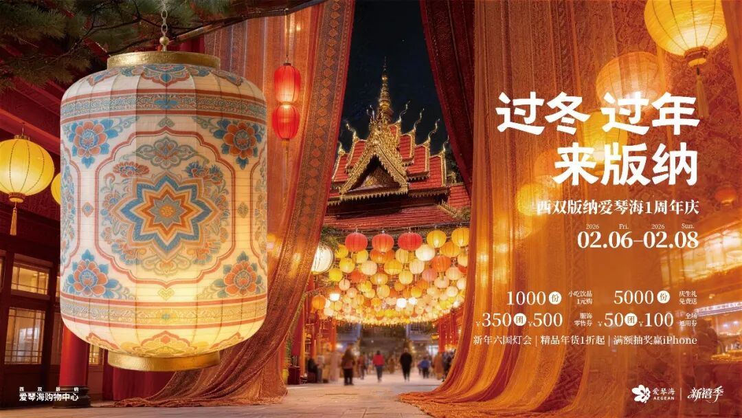 西双版纳爱琴海则会借势1周岁店庆举办西双版纳首届新年灯会,结合56个民族华服大秀、民族大联欢,尽显地域特色与节日氛围;成都三利爱琴海的“过‘新’年发‘大’财”装置与成都后花园爱琴海的“好运接接・马上灵”美陈,更将把马年祈福寓意融入场景设计,传递新春美好祝愿。