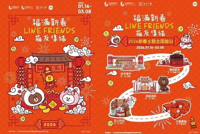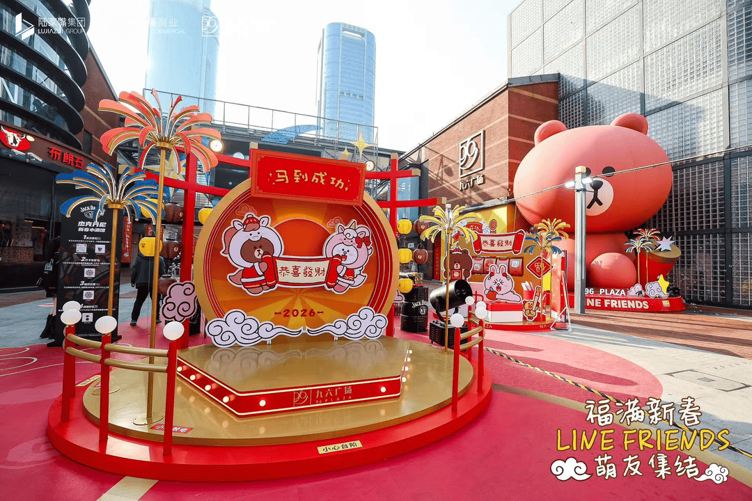 1月16日,陆家嘴九六广场联手知名IP“LINE FRIENDS”打造“福满新春萌友集结——2026新春主题全国首站”系列活动。