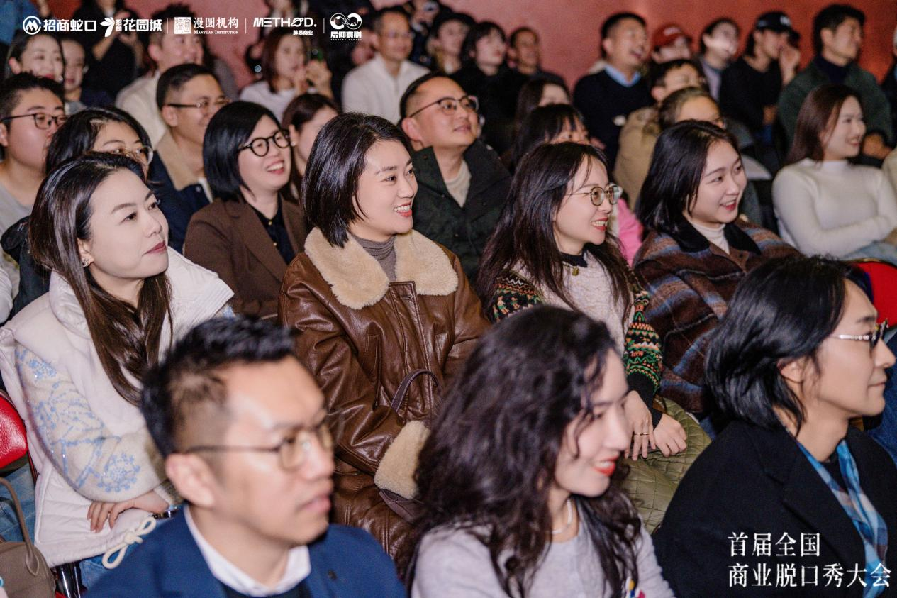 活动在漫圆机构董事长秦龙的开场秀中拉开序幕,他以“商业人自黑”式幽默犀利剖析行业痛点,点燃全场。后仰喜剧创始人二娃、Berry Beans创始人韦寒夜、止痒商店主理人胡冰、等11位跨界嘉宾轮番登台,他们用自嘲、反讽、段子解构同质化困局,引得台下掌声与笑声迭起。招商商管华西事业部总经理胡斌亦带来惊喜的即兴脱口秀分享,将现场氛围推向高潮。