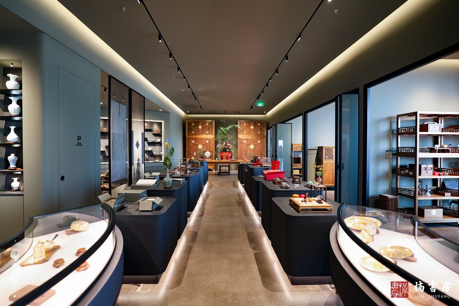 步入店内,传统文脉与现代美学交融共生。空间以书、香、茶、花 “四道”为核心,借木器、瓷器、金银器为载体,让古典雅韵融入当代生活。这里不只是赏玩文化器物的场所,更是可沉浸式体验的“文人书房”。