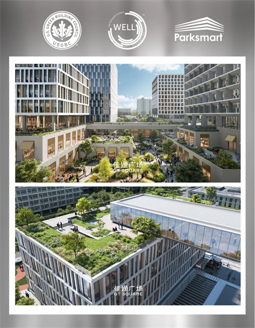 新加坡佳通企业秉持着环保和可持续发展的理念,佳通广场在建设过程中,从环保建筑材料应用、清洁能源利用、和谐生态人文环境建设等各方面同样坚持着这一方向。与此同时,项目获得了 能源与环境设计先锋奖铂金级 LEED V4.1 FOR COMMUNITY预认证、WELL健康社区认证铂金级 WELL COMMUNITY中期认证及绿色智能停车场认证金级 PARKSMART预认证 等多项国际认证证书。