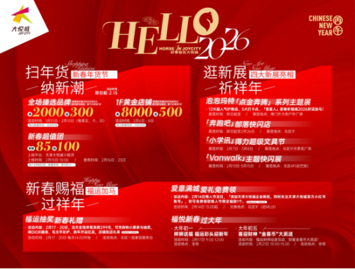 腊月渐浓,年味已至。天津大悦城以“骏悦新潮”为主题,正式拉开2026丙午新春欢庆的华彩序幕。邀你一起扫年货纳新潮、逛新展祈祥年、探新店启新程……「HORSE」连连,惊喜不断,「马」住年味,一马当先。