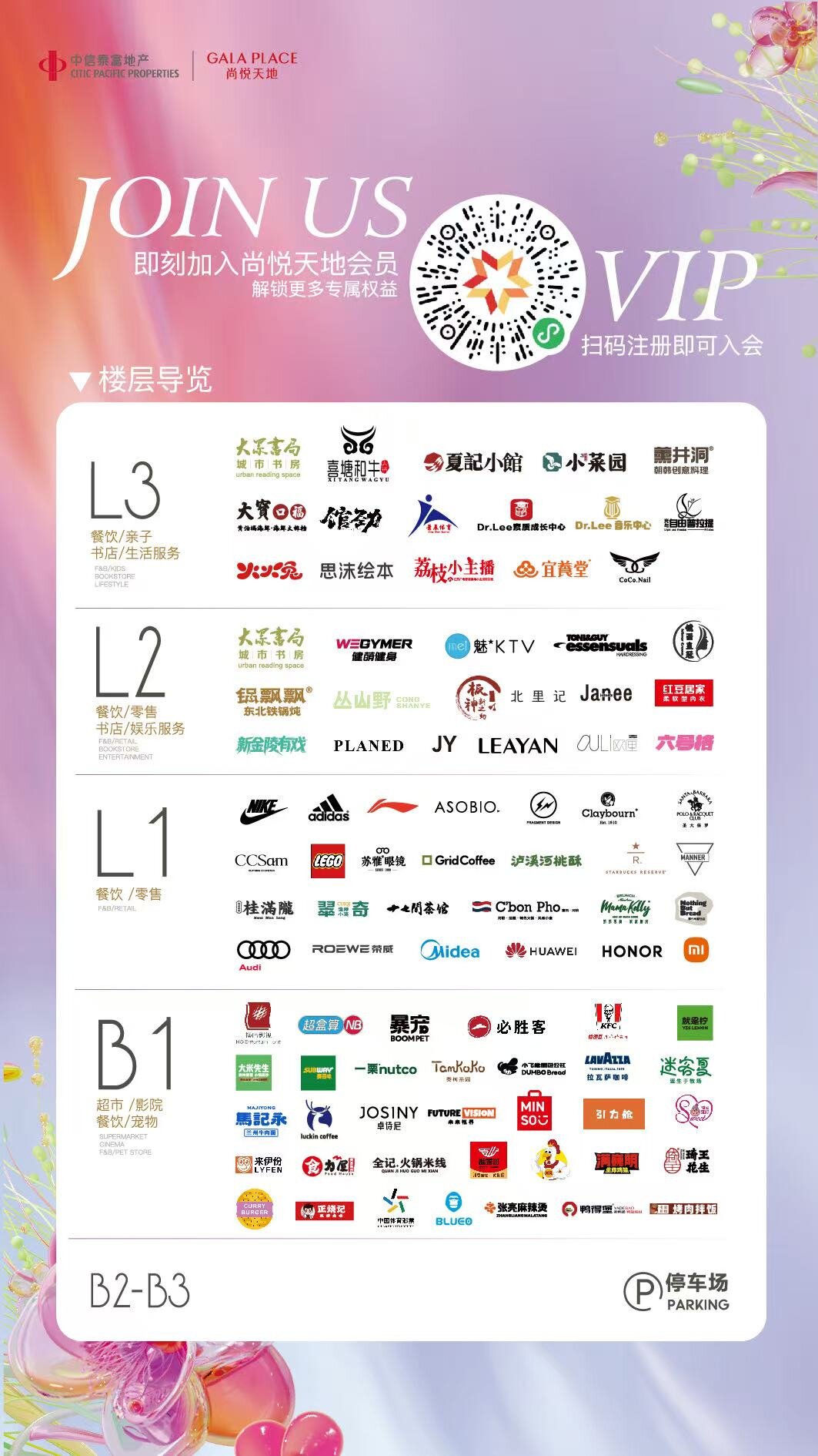 把“潮流”做足:以潮牌矩阵构筑全场景潮流消费体验,完善项目生活服务闭环。CCsam美妆及设计师服饰集合店汇聚优质设计师品牌与新潮美妆,搭配专业试妆、穿搭服务,将个性潮流融入日常;阿迪达斯、耐克主打专业运动装备与限量潮品,李宁以国潮内核演绎中式运动风尚,三大品牌精准覆盖运动潮流客群的多元需求。HUAWEI门店集结全系列智能潮品,打造沉浸式智能潮流场景,辅以专业服务让前沿科技贴合潮流生活。LEGO乐高授权专卖店特设专属试玩区与专业拼砌指导,将积木玩乐升级为兼具潮流感与陪伴感的亲子时光,多元品牌协同发力,为不同客群提供高品质潮流选择,进一步丰富全维生活圈的核心内涵。
